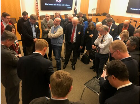 What a day it has been! So many Pastors and heads of Christian schools drove for hours from every corner of the state to show up EARLY and FILL THE ROOM of the Senate General Laws committee in the state Capitol, waiting for over SIX HOURS to make a mighty stand by speaking in support of religious freedom, which has come under attack like never before in Virginia! Many pastors gave up their whole day and even canceled their Wednesday night plans at their church. They prayed, they prepared, they strategized, they wore stickers. It was so incredible and encouraging!